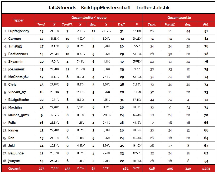Meisten „Tipp der Woche“ | 2 x | McChris1382 Tim1893 |