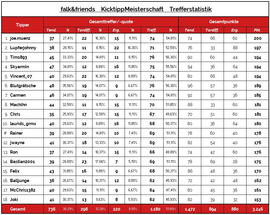 | Meisten „Tipp der Woche“ | 2 x | McChris1382 Tim1893 Balljunge joe.muenz |