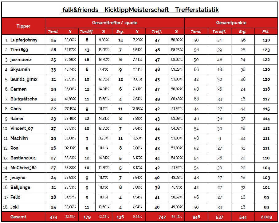 | Meisten „Tipp der Woche“ | 2 x | McChris1382 Tim1893 |